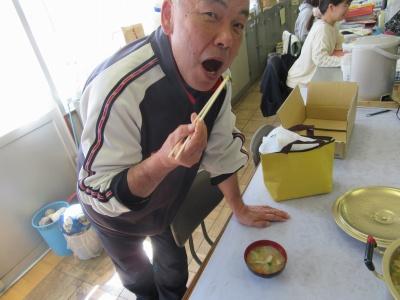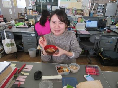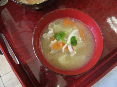 (校長のつぶやき・・・元気なハート形の葉っぱとできかけの赤い根っこがしっかりと豚汁に入っていました。インタビューをしたところ、先生たちは分担をしたようですよ。人参は、山﨑先生によるカットだそうです。山成先生は、ラディッシュを収穫したそうですよ。とてもおいしかった。朝から、6年生の先生が集結していたので、何かあると思っていましたが、豚汁を作っていたとは・・・。出張から帰ってきて、温かい豚汁がお腹に染みわたりました。ありがとうございました。)