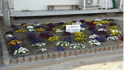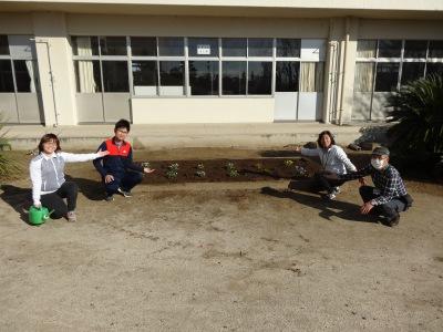 「なかよし学級の花壇にビオラを植えました。隣の花壇に植えたパンジーより少し小さいビオラの花も素敵です。学校校務員の小山さんが花を植える前に耕運機をかけたり、花壇の周りを整備してくださったりしました。ありがとうございます。今日の陽射しは穏やかですね。花の色や匂いに誘われて、かわいいてんとう虫も遊びに来ていましたよ。」