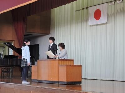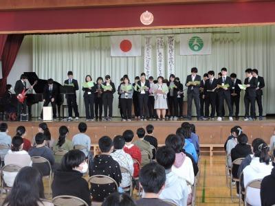 先生たちからはサプライズで、「365日の紙飛行機」の合唱をプレゼントしました。エレキギターも登場しましたよ。楽器演奏の鏑城先生、佐藤先生、素晴らしかったです。朝に夕に、練習に練習を重ねましたが、うまく歌えたでしょうか。