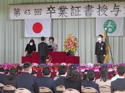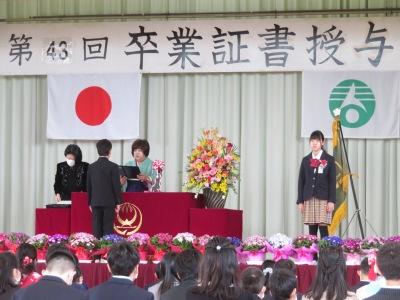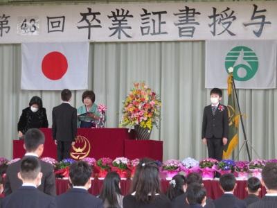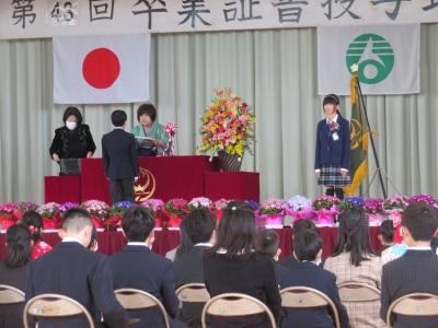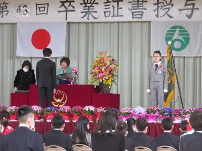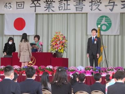 卒業証書授与式では式辞をしっかり読みます。今日のように泣いてはいけませんね。