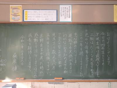 3月19日(木)今日も先生たちからのメッセージを預かりました。どうぞ・・・。