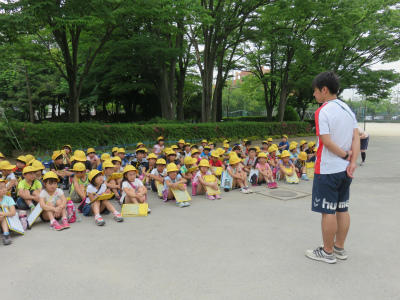 小倉先生からは、6月の生活目標「落ち着いて生活しよう」というお話がありました。また、お話をするときに「目と耳と心で聞く」という大切なお話もありました。