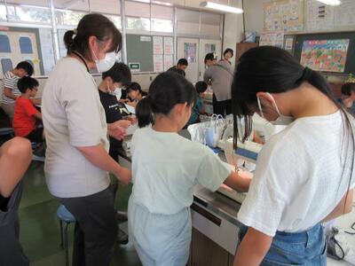 笠井歯科医院の歯科衛生士さんをお招きして、「立野っ子 歯みがきマスターになろう!」を合言葉に、正しい歯のみがき方を学習しました。
