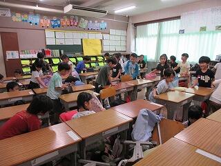 学年によって下校時刻が異なるため、1・2年生は4時間目に、3年生は5時間目に、4~6年生は6時間目に実施しました。