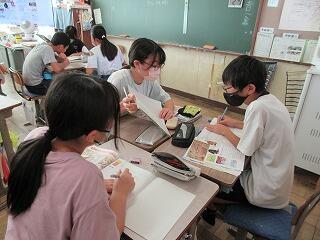 3年生は、安全マップ作りです。班でお互いのマップを見合い、アドバイスをします。その後、オクリンクを使ってデータで提出しました。