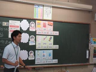 3時間目、なかよし学級では、隣のクラスの友達をお客さんとして招き、夏祭りを行いました。射的やわなげ、さかなつりに屋台と、様々な出店を作り、楽しんでもらえるよう工夫しました。お客さんだった子たちも、「今度は自分たちもお店をやりたい」と目を輝かせていました。
