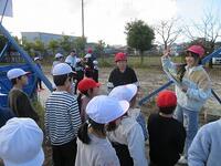 2年生がリードし、遊具の使い方の手本を見せたり、手を引いて移動したりとお兄さん、お姉さんらしく1年生の面倒をよく見ていました。