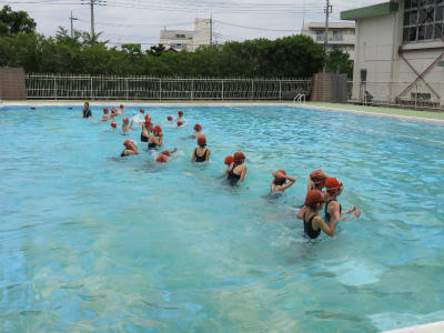 プール開きも無事終え、プールは青々と水をたたえています。立野小学校ではm、昨日から水泳指導が始まっています。今日、6月6日(火)4校時、6年生が元気に水泳の授業に参加しました。本間先生からは、①安全第一②目標の明確化、のお話がありました。やや肌寒くも感じましたが、ルールを守り、元気いっぱい泳ぎました。