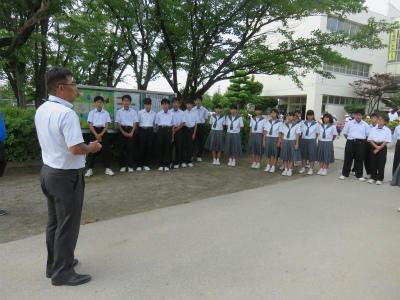 7月2日(火)朝、昨日に引き続き「あいさつ運動」が行われました。今朝もたくさんの大増中のみなさんに御来校いただきました。