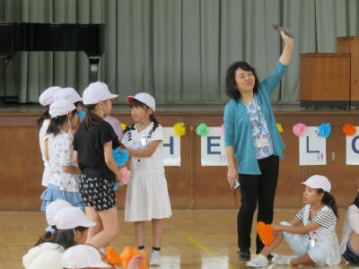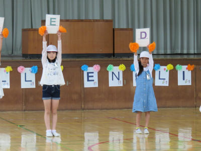 イングリッシュ集会係のリードで、元気いっぱいの集会です。