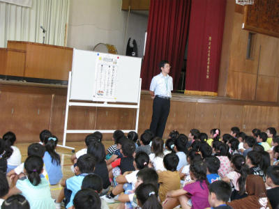 校長先生の元気なあいさつから、2学期始業式のお話が始まりました。長い夏休みの間事故無く過ごし、再び合うという校長先生との約束を無事果たしました。2学期も元気に頑張りましょう。
