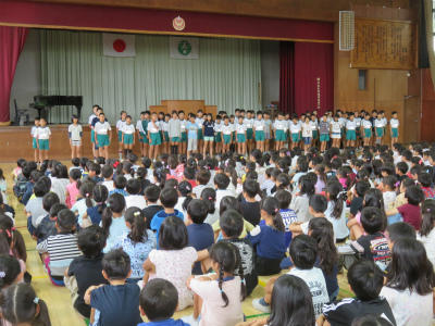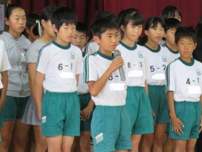 続いて、選手代表の言葉、児童代表の言葉がありました。出場した選手のみなさんも、応援してくれた全校児童のみなさんも、お互いに感謝の気持ちを述べていました。「心の立野小」です。