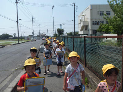 5月25日(金)1・2校時、2年生が「校外学習」に出かけました。生活科「わたしの町 だいすき」という単元のお勉強です。学校周辺の様子を観察し、絵地図に表したりします。住宅街や公民館周辺を観察しました。