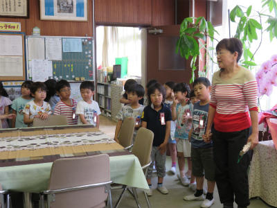 5月19日(金)1年生の「校舎めぐり」がありました。かわいい1年生がクラスごとに校長室にもやってきました。「いろんな校長先生の写真があるー。」「お花がたくさんある。すごい。」「トロフィーかっこいい。」初めて入った校長室に興味津々な様子でした。校長先生とお話がしたいときは、いつでも来てくださいと約束しました。
