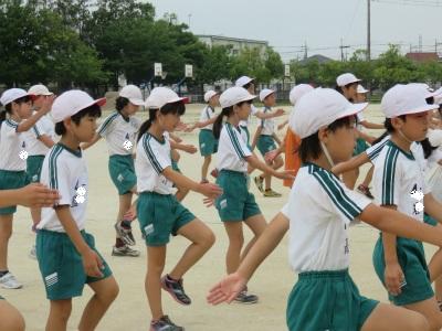 7月19日(木)1校時、校庭において4年生の体育(集団行動)の授業が行われました。今朝も気温が高く、「おは走」は中止となりました。4年生の体育も20分間と時間を限定して行いました。運動会での表現「集団行動」の練習です。短時間で集中して取り組みました。きびきびした動きができあがってきました。