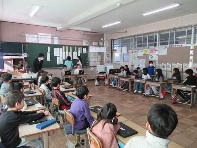今日は2年生で特別活動(学級活動)の研究授業を行いました。「1年間ありがとうの会をしよう」について話合い活動を行いました。ICT活用を活用しながら、活発に話し合っていました。