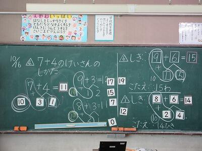 教室では、1・2年生の学級では算数の学習をしていました。1年生は繰り上がりのたし算、2年生はかけ算九九の学習に入っています。とても大切な学習です。子どもたちは一生懸命に学習していました。