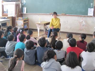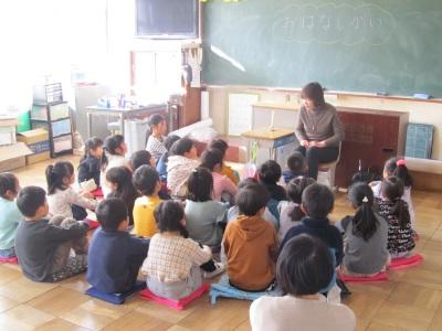 2月4日(火)1校時、お話会が開かれました。今朝も早くから、春日部おはなしの会の皆様に御来校いただきました。今日は、1年生と3年生です。いつものようにろうそくの炎と語りに引き込まれ、心豊かな時間を過ごすことができました。ありがとうございました。