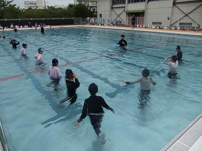 服を着て水中に入ると、とても重くなることを体験したり、着衣のまま浮いている練習をしたりしました。万一に備え、貴重な体験ができたようです。