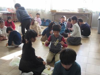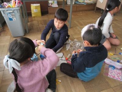 12月16日(月)3校時、1年3組と2年3組が生活科の授業で「おもちゃづくり」を行いました。2年生は、国語の時間にわかりやすく1年生に説明するための勉強もしてきました。今日は、実際に1年生と一緒におもちゃを作ってみました。すてきはギターとかっこいいロケットが完成していました。2年生は1年生に丁寧に言葉をかけていました。2年生、かっこいいなぁ。
