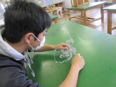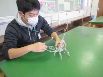 「臨時休業になってから、2回目の月曜日となってしまいました。先週の金曜日に図工の作品を机の上に乗せました。完成したところを見ることができなくて残念です。もし時間があったら、作品作りに引き続き挑戦してみてください。」
