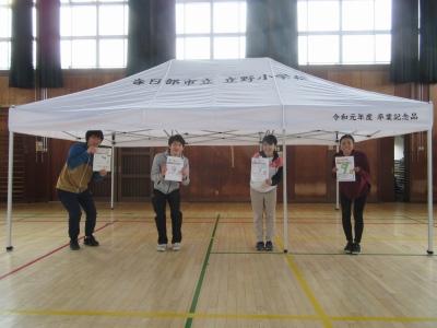 「卒業式まであと9日!!3月9日(月)は、またまた体育館からです。今日は、みなさんから卒業記念品としていただいたテントを立てました。大きくて立派なテントです。ですが、組み立てるのはとても簡単にできました。おそらく、来年の運動会で活躍してくれると思います。みなさんもよかったら見に来てくださいね。