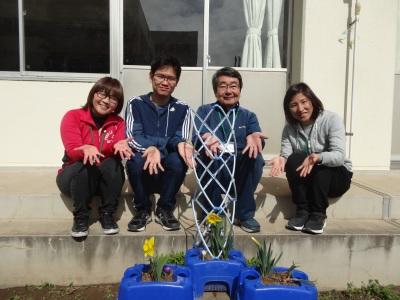 PS.2年生が植えたクロッカスとスイセンが咲き始めました。春はすぐそこですね。」