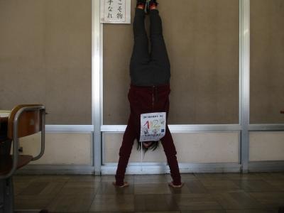 (校長のつぶやき・・・「三嶋先生、やるなぁ。自ら倒立とは・・・す・ご・い。」