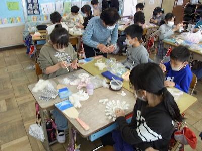 3年生が総合的な学習の時間に「押絵羽子板づくり」の体験学習を行いました。作り方を教えてくださる9名のゲストティーチャーをお迎えし、押絵羽子板の作り方を丁寧に教えていただきました。羽子板には今年の干支の「うさぎ」がつけられました。みんな素敵な押絵羽子板ができました。御指導ありがとうございました。