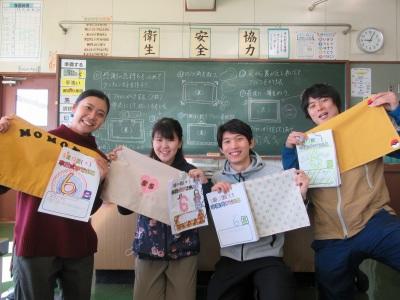 (校長のつぶやき・・・だから、以前「校長先生は何色が好きですか?」と聞いたのですね。きれいな黄色のランチョンマットをありがとう。菜の花のようです。嵐のロゴは、6年生の先生方のサービスですね。当分使わずに飾っておきます。)