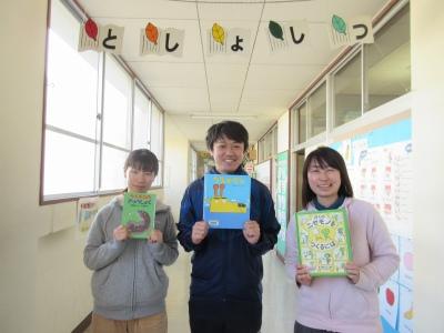 「昨日のクイズの答えは、アヒルコースでした!わかったかな?今日は、月ごとの振り返りは、お休みして1年生の先生方のおすすめの本をみなさんに紹介します。午前中に図書室に行って、どの本がいいかなと一生懸命選んだので、ぜひ今度図書室に行ってよんでみてください。