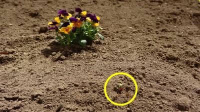 「なかよし学級の花壇にビオラを植えました。隣の花壇に植えたパンジーより少し小さいビオラの花も素敵です。学校校務員の小山さんが花を植える前に耕運機をかけたり、花壇の周りを整備してくださったりしました。ありがとうございます。今日の陽射しは穏やかですね。花の色や匂いに誘われて、かわいいてんとう虫も遊びに来ていましたよ。」