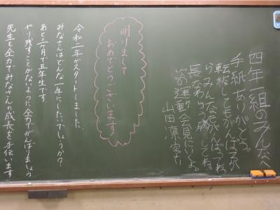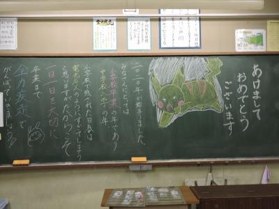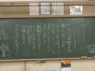 1月8日(水)早朝、教頭先生が教室を回りました。各教室の黒板には、子どもたちを出迎える担任のメッセージが溢れています。今年も子どもと共にある、そんな立野小でありたいと思います。