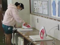 立野っ子のみなさんが学習に取り組む様子です。手を上げて発表、のこぎりで木材を加工、体育でマット運動、家庭科でミシン・アイロン、ノートに丁寧に記入、1年から6年までよく頑張っています。