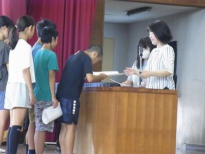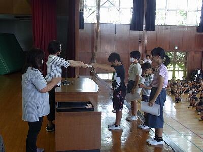 今日は表彰朝会がありました。市内陸上大会と県の硬筆展の表彰を行いました。