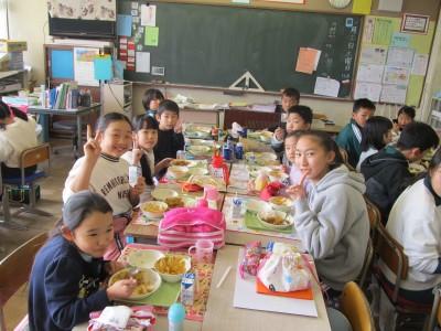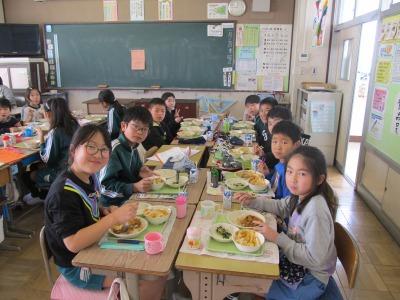 1月16日(木)昼、今日は「なかよしタイム」です。縦割りのメンバーで給食を食べ、校庭で元気に遊びました。普段はなかなか関わり合う時間が持てませんが、今日は特別です。ハヤシライスを上手に配膳し、みんなで仲良く給食を食べました。上級生は下級生の面倒をよく見ていました。