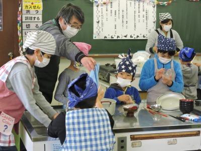 12月19日(木)3校時、なかよし学級のみなさんが学級菜園で育てた大根を使って、みそ汁をつくりました。校長、教頭先生も招待を受けて、家庭科室でごちそうになりました。大根の甘いこと。とてもおいしくできました。育てた大根が大きくなっていたこと、水を測って鍋に入れたこと、大根を切るときに硬かったこと。たくさんお話を聞きました。