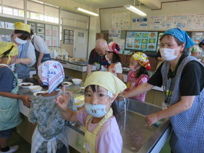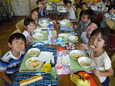 7月11日(水)1年2組は、にこにこルーム(ランチルーム)で給食を食べました。いつもとは違った雰囲気の中、楽しく給食を食べることができました。1年生も、活動力が多くなってお腹もすくようになりました。モリモリ食べて大きくなりましょうね!