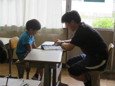 7月27日(金)9:00~ステップアップ教室が開催されています。今日も大増中学校の生徒のみなさんにお手伝いいただきました。お忙しい中、ありがとうございました。今日で、中学生の学習補助が終了します。今後ともよろしくお願いします。