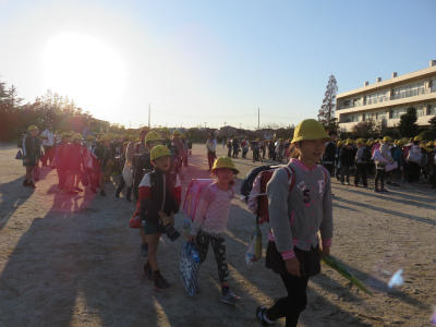 校長先生からは「来た道とたどる道」の話をしました。班長さんは、自分が小さかったころのことを思い出し、小さな気遣いをして安全に登校班を率いてほしい。小さい学年の人は班長さんの苦労を時には感じて、協力を惜しまないこと。「来た道」と「たどる道」を考え、いつかあんな立派なお兄さん、お姉さんになりたいと思うことが立野小学校のスタイルです。