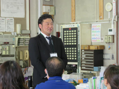 9:21緊急地震速報を利用しての地震発生通告を行いました。9:25避難開始をし、6分5秒で全員の避難が確認されました。