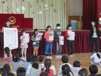 校長からは「恩送り」の話をしました。下の学年の子にかけた心を、下の学年の子がさらに下の学年に送っていく。そんな学校がすばらしいよ、という内容です。1年生はいよいよ明日から「おは走」も始まるようですよ。頑張ってね!!