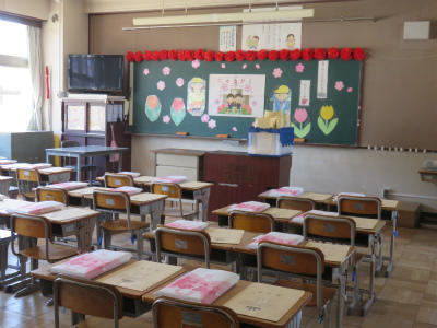 今日は、午後から入学式。可愛い新入生を心待ちにしています。教室でも準備が整いました。お天気にも恵まれました。早く立野小学校においで!!