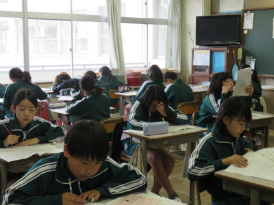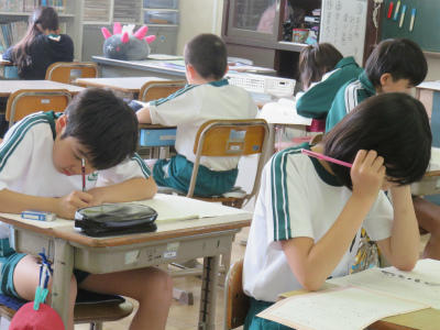 国語、算数、質問紙に取り組みました。学力向上は、本校は今年度も課題としています。個人の伸びを知る調査です。どの教室も真剣に取り組んでいました。
