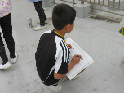 4月17日(火)3年生は、社会科の学習で屋上から見えるものを調べました。担任の高岡先生から校庭は南、と教えられました。北の方角には島忠が、東の方角にはイトーヨーカドーが見えました。自分の家を探したり、近所のマンションが見えたりしました。