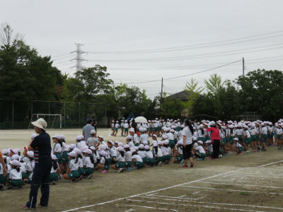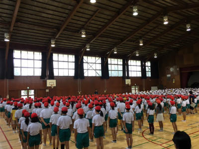 校長先生の元気なあいさつから、2学期始業式のお話が始まりました。長い夏休みの間事故無く過ごし、再び合うという校長先生との約束を無事果たしました。2学期も元気に頑張りましょう。