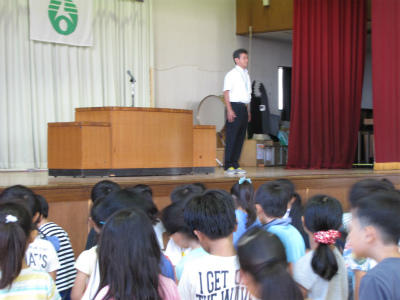 校長先生の元気なあいさつから、2学期始業式のお話が始まりました。長い夏休みの間事故無く過ごし、再び合うという校長先生との約束を無事果たしました。2学期も元気に頑張りましょう。