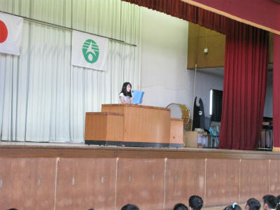 児童代表の言葉、とてもしっかりと言うことができました。式の後には、生徒指導部から今月の生活目標「決まりよい生活をしよう」のお話がありました。