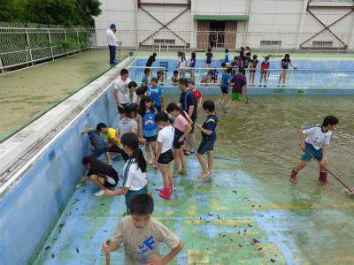 5月24日(水)高学年のみなさんの協力により「プール掃除」が行われました。暑い日が続き、もうプール開きもそこまで来ています。大変な力仕事でした。ありがとうございました。