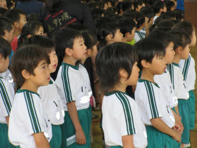 5月24日(水)朝、体育館において「音楽朝会」が開かれました。本当に立野小学校の子どもたちの歌声は素晴らしい。上級生のお兄さん、お姉さんの透き通った歌声を1年生も耳を澄まして聞いています。しっかりと大きな口を開けて発声しています。姿勢も正しく、胸を張っています。質の高い文化に触れると、心も豊かに育ちますね。